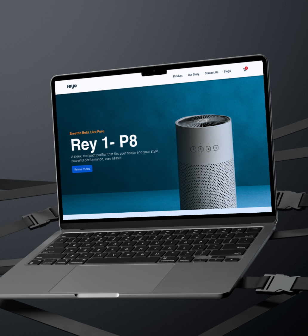 This e-commerce website was designed for Rey 1, an air purifier brand, with a strong emphasis on trust and problem-solving. The landing experience highlights how the product tackles common air-quality issues, reassuring users through clear explanations, benefits, and proof-driven visuals. The layout guides visitors through understanding the problem, discovering the solution, and confidently completing their purchase.