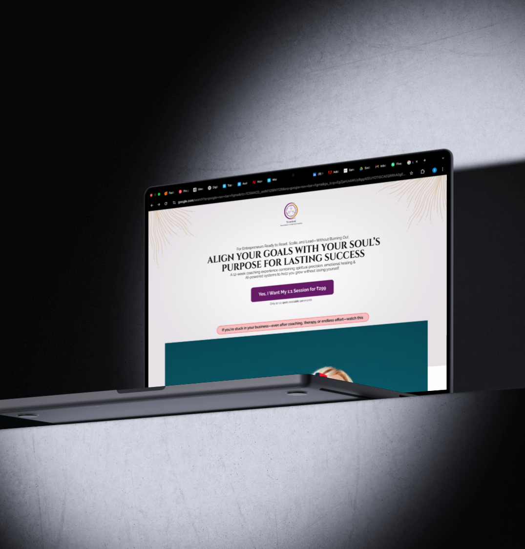 This landing page was designed for Arshi’s Masterclass to convert Meta ad traffic into bookings. The layout focuses on clear messaging, strong visuals, and strategic CTAs to guide users smoothly from the ad click to confirming their slot.